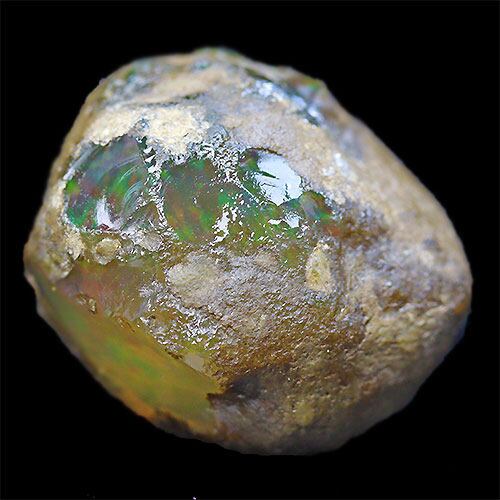 美しい遊色効果が見られるエチオピアンオパールの原石。