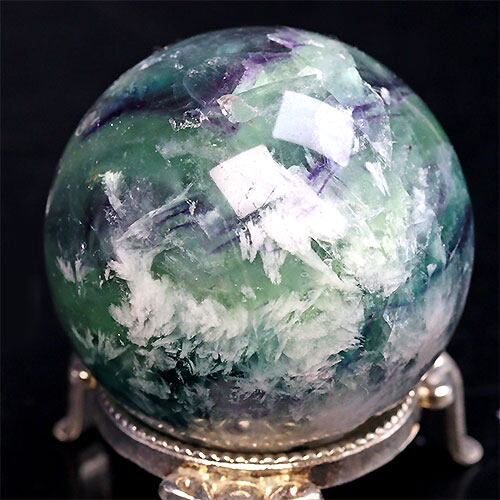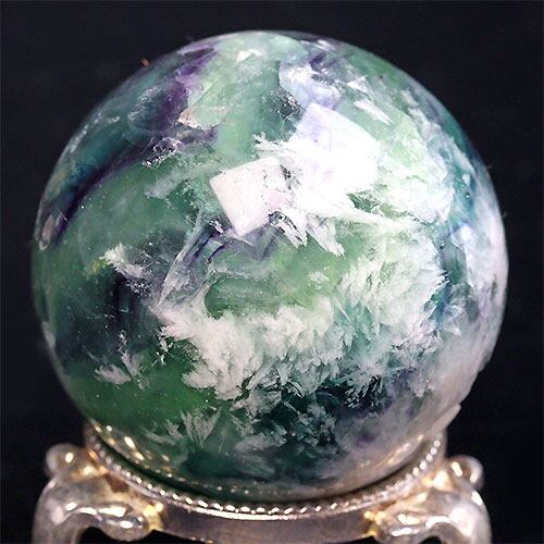 〔D403-7〕約53mm エンジェルフェザーフローライト 丸玉 スフィア 置物