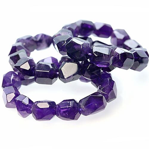〔K1624〕約12-14mm 濃紫アメジスト タンブルカット ブレスレット 【ランダム発送】