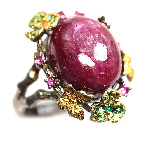 〔R361-19〕天然ルビー SV925 リング 指輪 フリーサイズ Ruby コランダム 紅玉