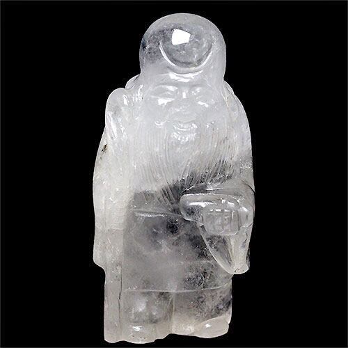 〔D383-32〕彫刻品 水晶 福禄寿 置物 長寿延命、諸病平癒、富貴繁栄、子孫繁栄 七福神の一柱 天然石