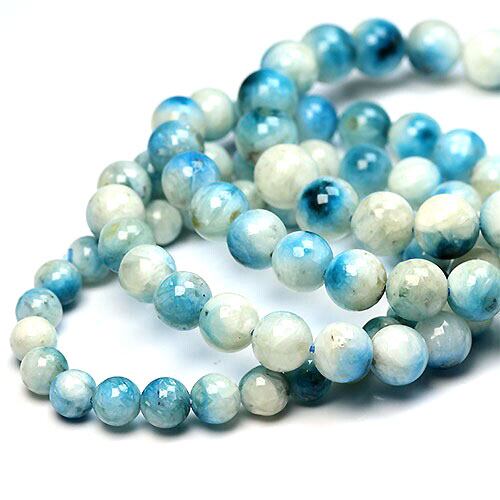 まるで焼物の様な発色と表面の質感を持つブルーアラゴナイトのブレスレットです。天然の風合いと、鮮やかな青色がなんとも言えない雰囲気です。