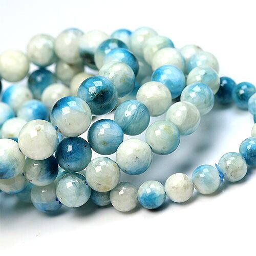 まるで焼物の様な発色と表面の質感を持つブルーアラゴナイトのブレスレットです。天然の風合いと、鮮やかな青色がなんとも言えない雰囲気です。