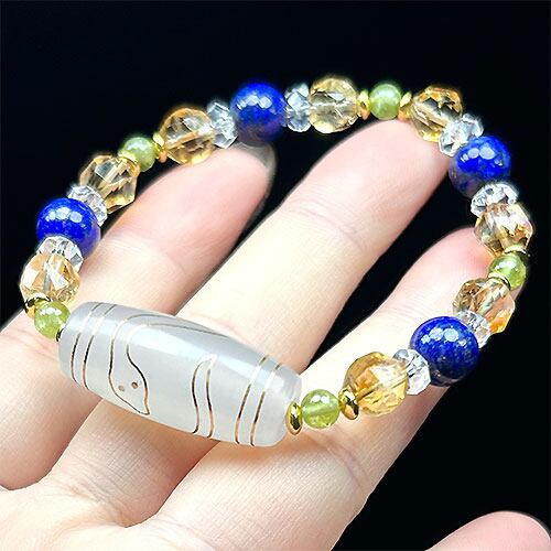 【素材】金線(sv925)/白蛇天珠瑪瑙約30mm前後/ペリドット5mm/シトリンスターカット約8mm/ラピスラズリ約8mm
