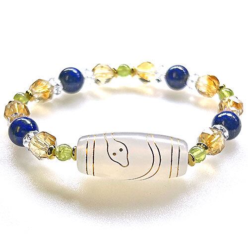 〔K1664〕金運 知恵 金線(sv925)入り 白蛇天珠 弁財天の化身 デザインブレスレット