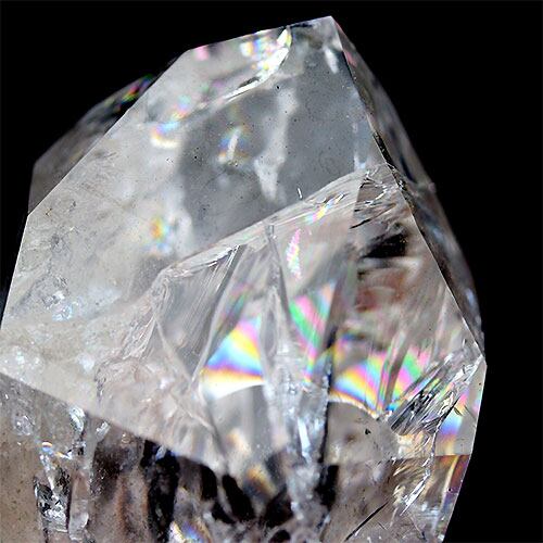 水晶にクラック(亀裂)が入ることによりキラキラと虹色の反射を見せるクラック水晶ポイント