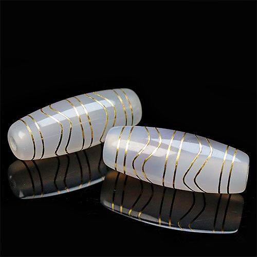 〔I135〕【白瑪瑙】金線 四線虎牙天珠(sv925)天珠 守り 開運 約30x13mm【ランダム発送】