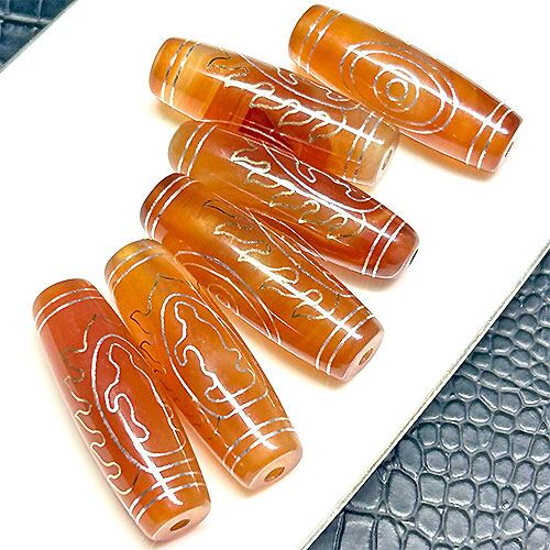 〔I133-3〕【赤瑪瑙】金線銀線 炎観音一眼天珠(sv925)天珠 守り 開運 約40x14mm カーネリアン【ランダム発送】