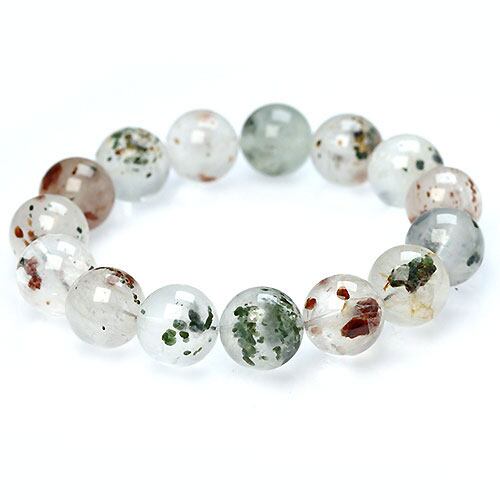 〔K1683-13〕約14mm オージャイト&スペサルティンガーネットインクォーツ ブレスレット 激レア共生 ブラジル産