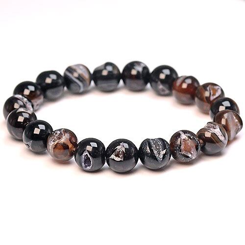 〔K1673-10m〕お買い得 約10mm ブラックアゲート笑口 ブレスレット ジオード 龍穴 笑い口
