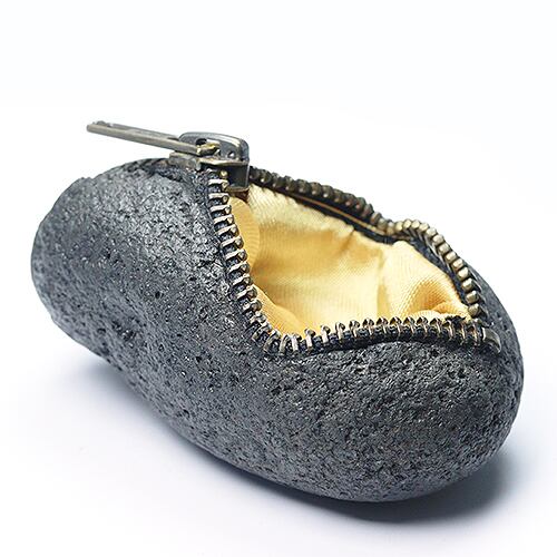 天然石にチャックをあしらった使った個性的なデザイン。内側サザレやルース、お気に入りの天然石をを入れて置物として部屋に飾ることが出来ます。