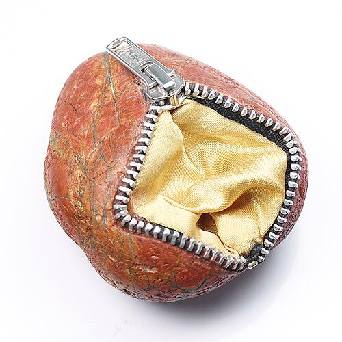天然石にチャックをあしらった使った個性的なデザイン。内側サザレやルース、お気に入りの天然石をを入れて置物として部屋に飾ることが出来ます。