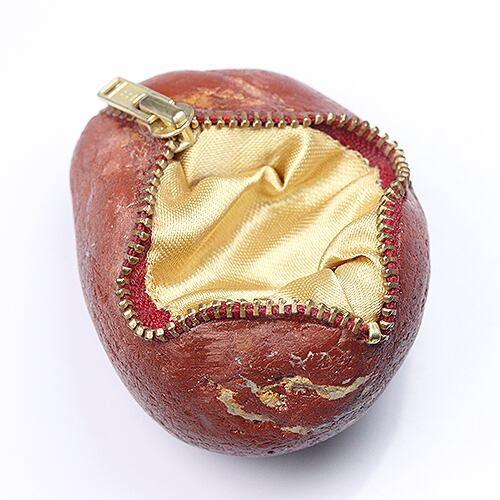 天然石にチャックをあしらった使った個性的なデザイン。内側サザレやルース、お気に入りの天然石をを入れて置物として部屋に飾ることが出来ます。