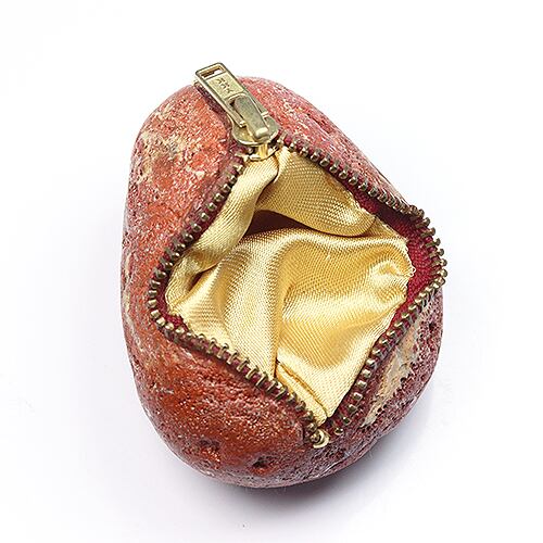 天然石にチャックをあしらった使った個性的なデザイン。内側サザレやルース、お気に入りの天然石をを入れて置物として部屋に飾ることが出来ます。
