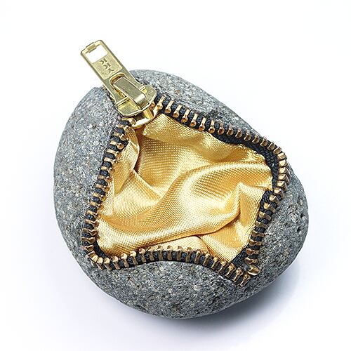 天然石にチャックをあしらった使った個性的なデザイン。内側サザレやルース、お気に入りの天然石をを入れて置物として部屋に飾ることが出来ます。