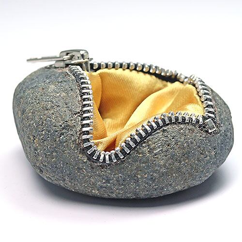 天然石にチャックをあしらった使った個性的なデザイン。内側サザレやルース、お気に入りの天然石をを入れて置物として部屋に飾ることが出来ます。