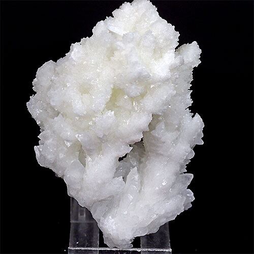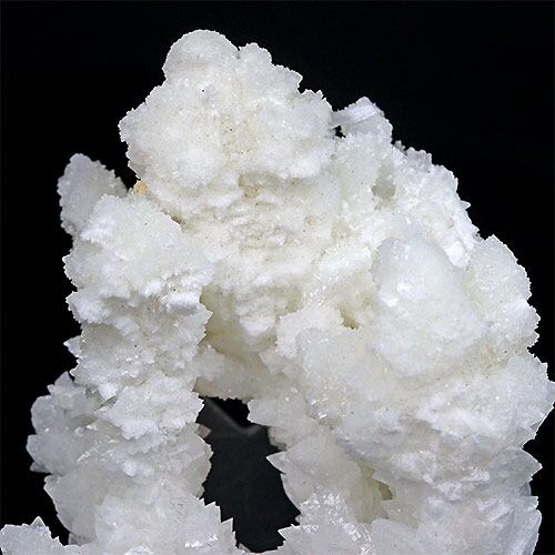 雪のような純白の結晶がキラキラと光を反射して、花のようにとても美しいアラゴナイト・フロスフェリです。