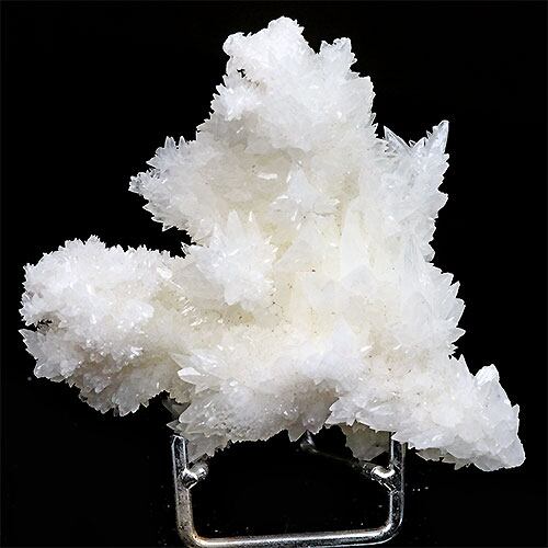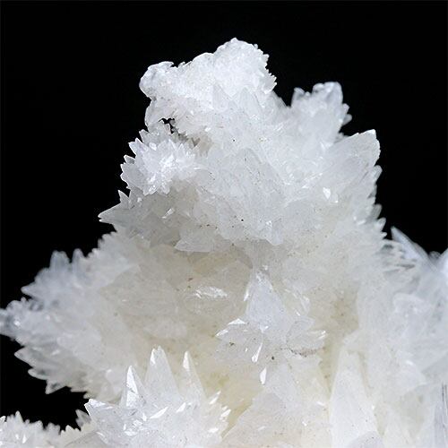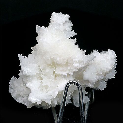 雪のような純白の結晶がキラキラと光を反射して、花のようにとても美しいアラゴナイト・フロスフェリです。