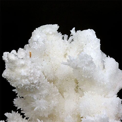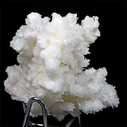 雪のような純白の結晶がキラキラと光を反射して、花のようにとても美しいアラゴナイト・フロスフェリです。