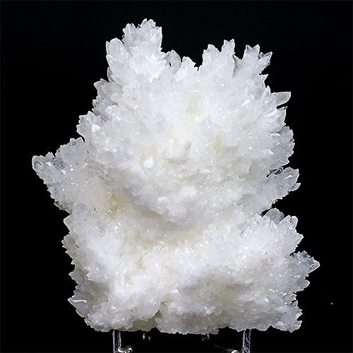 雪のような純白の結晶がキラキラと光を反射して、花のようにとても美しいアラゴナイト・フロスフェリです。
