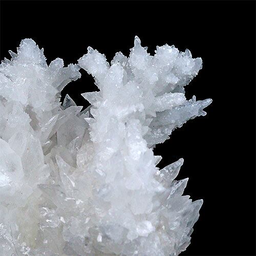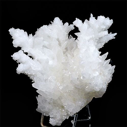 雪のような純白の結晶がキラキラと光を反射して、花のようにとても美しいアラゴナイト・フロスフェリです。