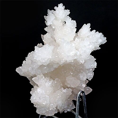 雪のような純白の結晶がキラキラと光を反射して、花のようにとても美しいアラゴナイト・フロスフェリです。