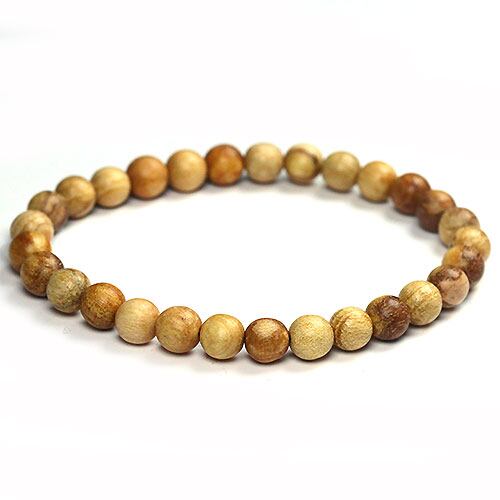 こちらはそのパロサントの天然木をビーズに加工してゴムを通して仕上げたブレスで、ほのかにパロサントの香りがする香木のブレスレットです。