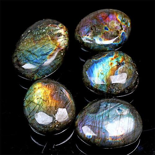 光にかざすと青やオレンジ、黄色など虹色の美しく輝く石。