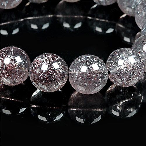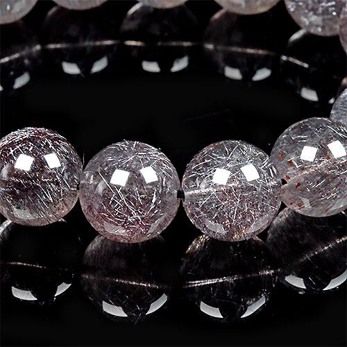 黒や赤のレピドクロサイトと針状のヘマタイトニードルがインクルージョンされて、まるで花火のようにキラキラ煌めく、通称「花火スーパーセブンブレスレット」です。