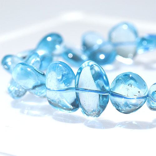 ブルートパーズは11月の誕生石や宝石としても有名ですので非常に多く目にすることができますが、これほど美しいブレスレットは簡単には手に入りません。