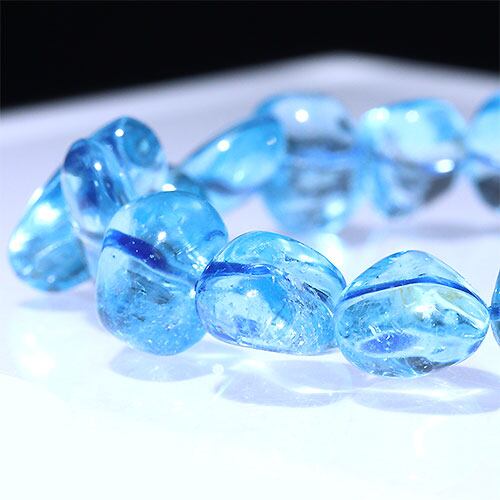 ブルートパーズは11月の誕生石や宝石としても有名ですので非常に多く目にすることができますが、これほど美しいブレスレットは簡単には手に入りません。