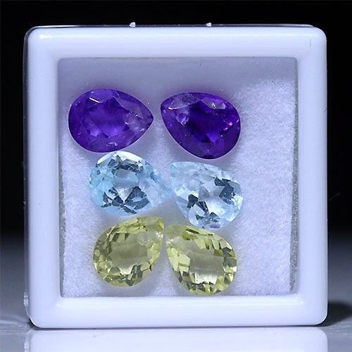 〔Z56-2〕6個入り 片穴あき アメジストペアシェイプ トパーズオーバル レモンクォーツペアシェイプ カット