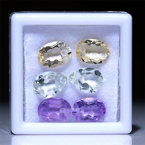〔Z56-1〕6個入り 片穴あき アメジストオーバル グリーンアメジストペアシェイプ シトリンオーバル カット ルース