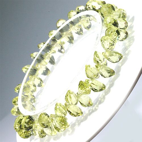 〔K1854-7〕高品質 宝石ルースカット レモンクォーツ Lemon Quartz ペアシェイプカット 約8x6mm ブレスレット