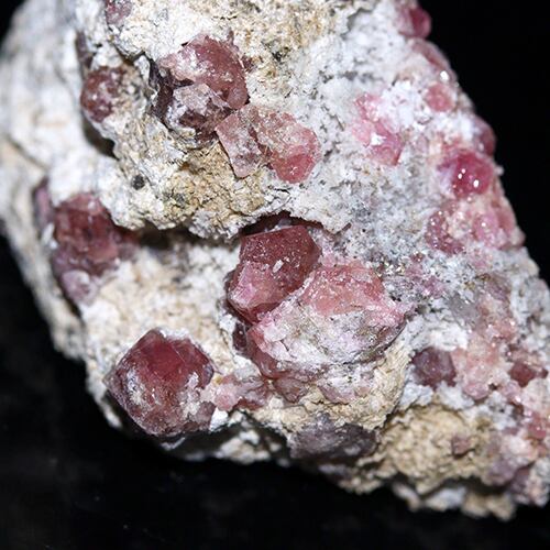 ピンクガーネットはメキシコのシエラ・デ・クルセスで採掘され、ピンク色が特徴です。このピンク色は、グロシュラーガーネットの一種で、ローゼライトやラズベリーガーネットとも呼ばれています。石灰岩の白い母岩に濃いピンク色の美結晶がたっぷり付いています。?「目標に至る幸運」という石言葉を持ち、恋、絆、友情などに関わるパワーストーンとしても人気です。?